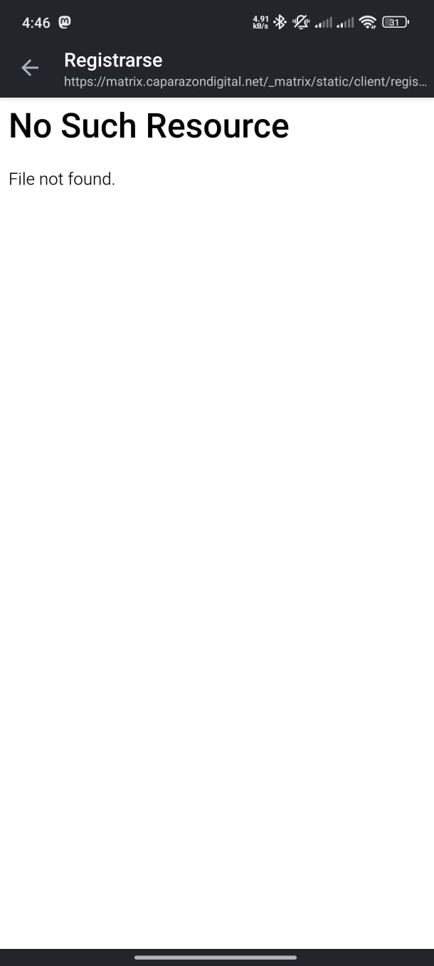 Error en la creación de nuevas cuentas para matrix.caparazondigital.net desde apps móviles #3